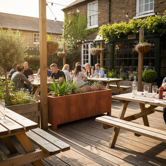 Corten Steel & Timber Bench Planter for Home & Commercial Spaces