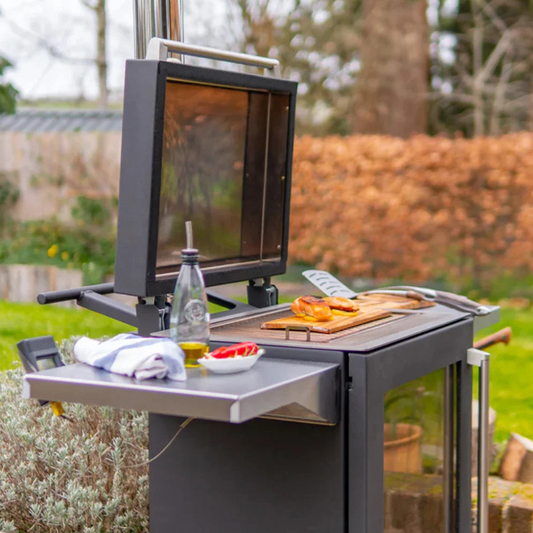 BBQube Grill and Heater with Log Store and Table – Outdoor Cooking