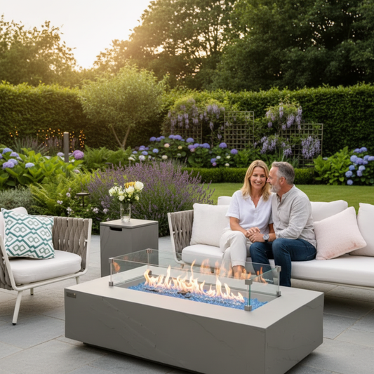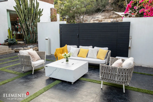 Elementi Granville Light Grey Fire Table | Modern Outdoor Gas Heater