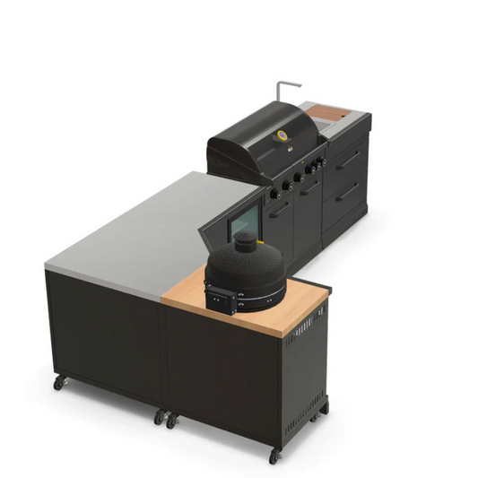GRLLR Connect Outdoor L Shaped Kitchen, Sink, 5 Burner Stove, Fridge and Kamado Grill